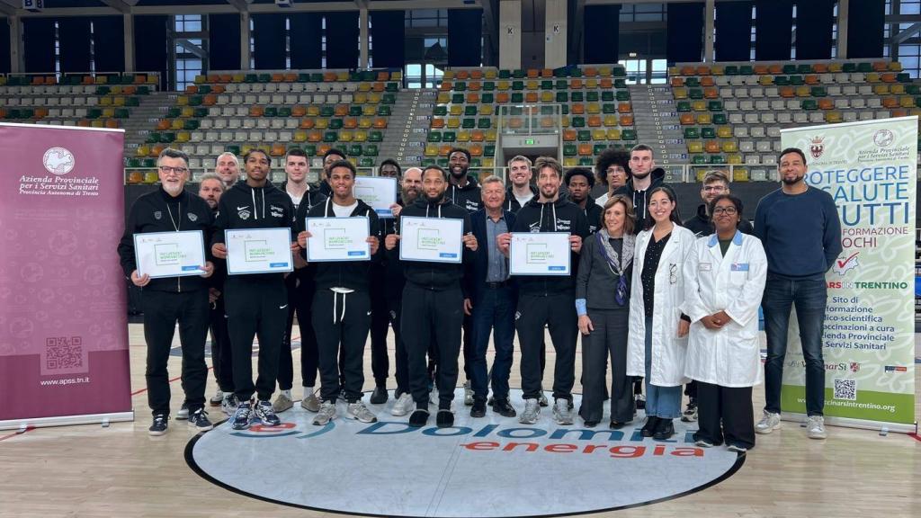 Si rinnova il sostegno di Dolomiti Energia Basket Trentino alle attività di prevenzione e sensibilizzazione di Apss. Anche quest’anno Aquila Basket scende in campo contro l'influenza stagionale, aderendo alla campagna vaccinale. Oggi alla BTS Arena le somministrazioni della vaccinazione antinfluenzale a giocatori, staff tecnico e dirigenziale.
